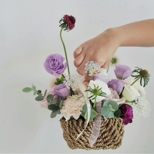 Small but Full of Surprises. Delicate blooms arranged in a charming Korean-style basket.