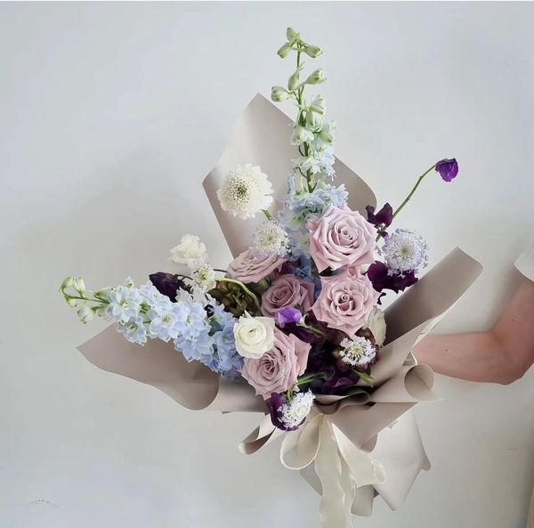 灵感源自韩式极简美学,线条利落、色彩柔和,呈现出宁静优雅的手绑花束,适合喜欢简约风格的你。
